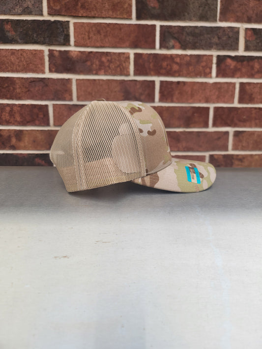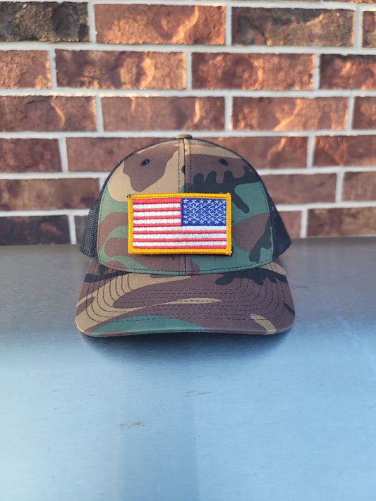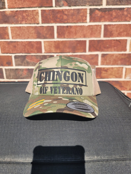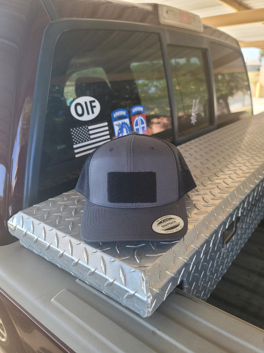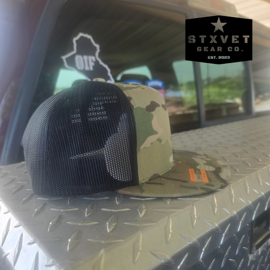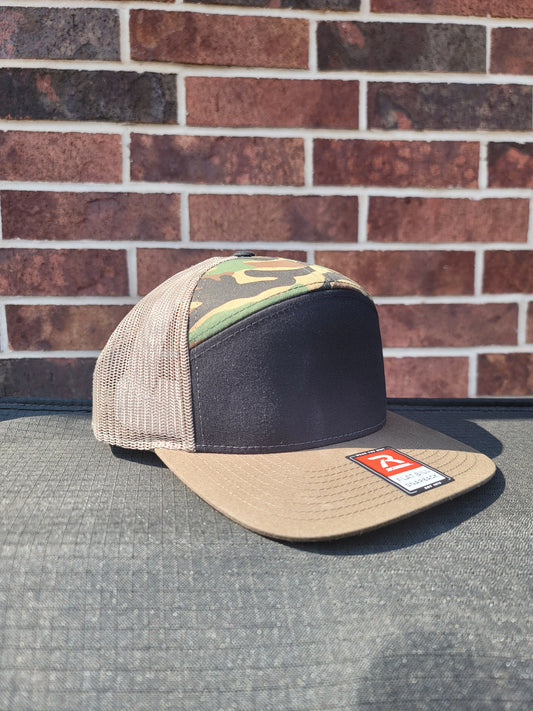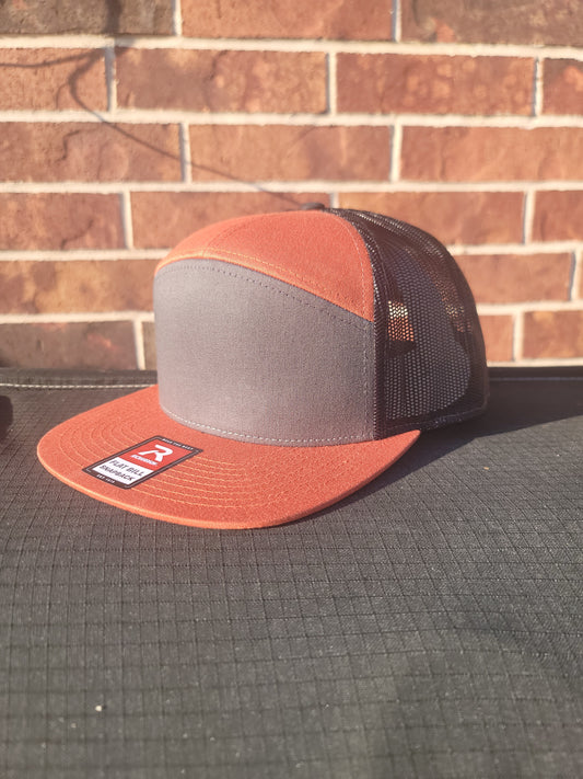 7 panel tri color caps - Charcoal/Burnt Orange/Black